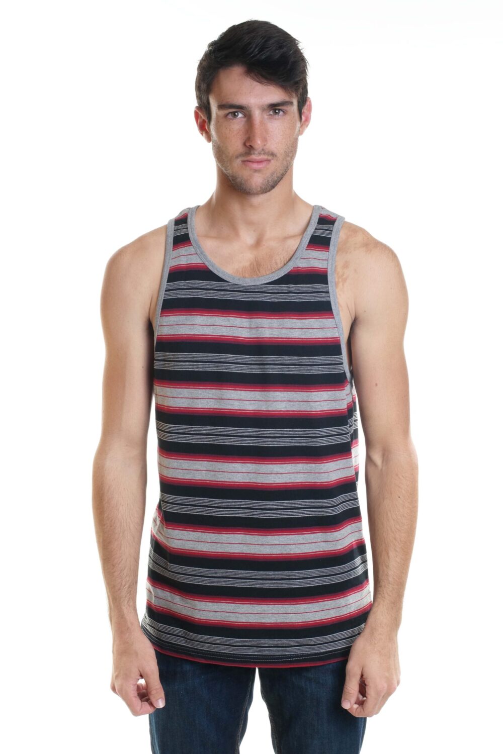 YAGO Men’s Casual Striped Tank Top Shirt for Indoor & Outdoor (Red/Grey/GA4)