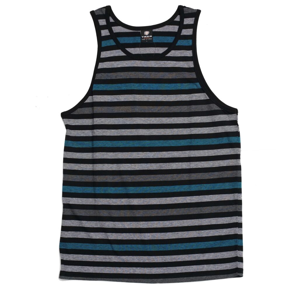 YAGO Men’s Casual Striped Tank Top Shirt for Indoor & Outdoor (Black/Blue/Gray, Q45)