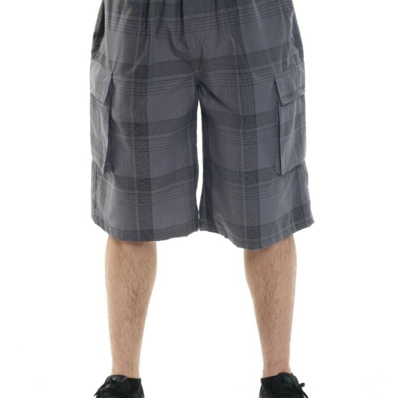YAGO Men’s Elastic Waist Drawstring Relaxed Fit Plaid Cargo Shorts Black Gray BN4