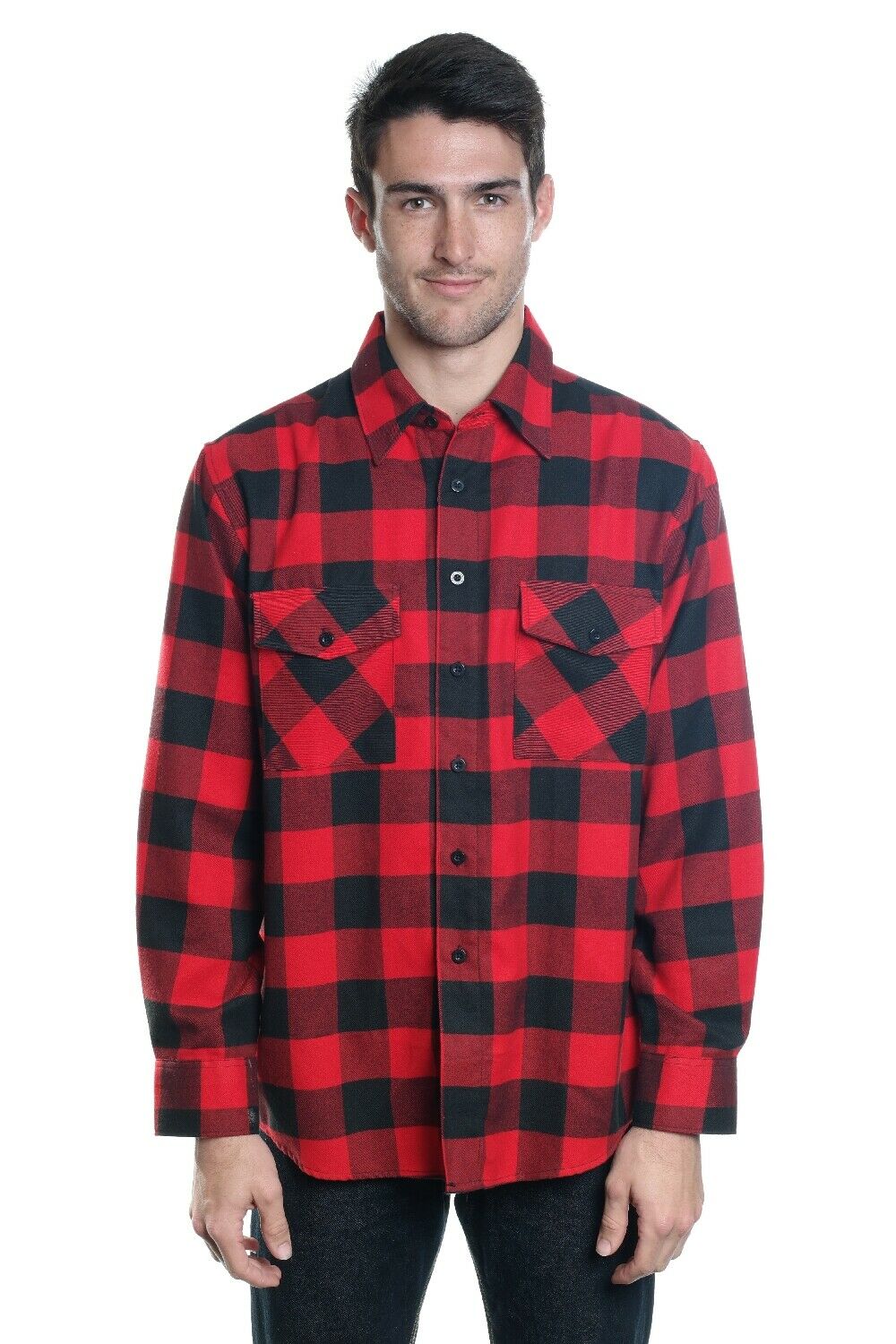 YAGO Men’s Casual Plaid Flannel Long Sleeve Button Down Shirt Red/B7 (S-5XL)